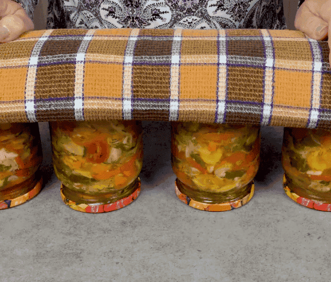 Закриваю кришками. Перевертаю банки на кришки та покриваю ковдрою і залишаю так стояти до повного остигання.