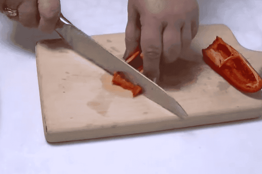 4. Помідори беремо досить щільні, щоб їх скибочки максимально збереглися цілими і нарізаємо на 4 частинки.