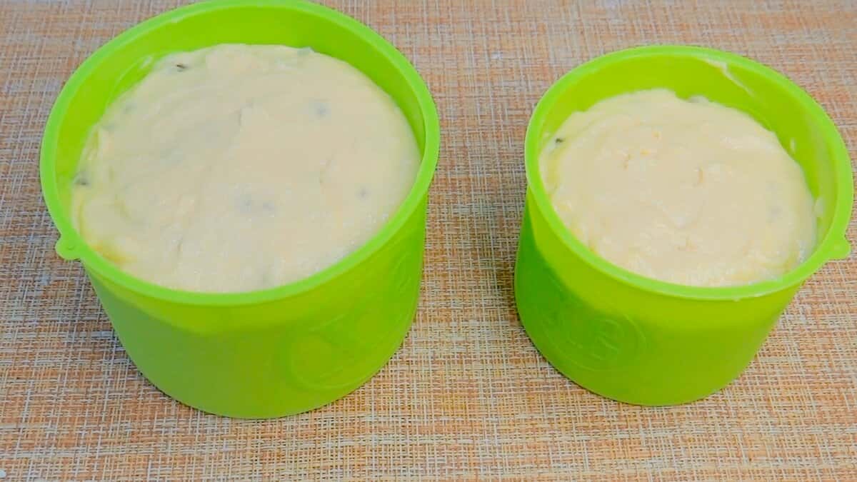 Формочки при необхідності змащуємо олією, якщо вони не силіконові. Наповнюємо формочки тістом на 3/4. Діаметр моїх 10 і 13 см. Випікаємо 45 – 50 хв при 170 градусах.