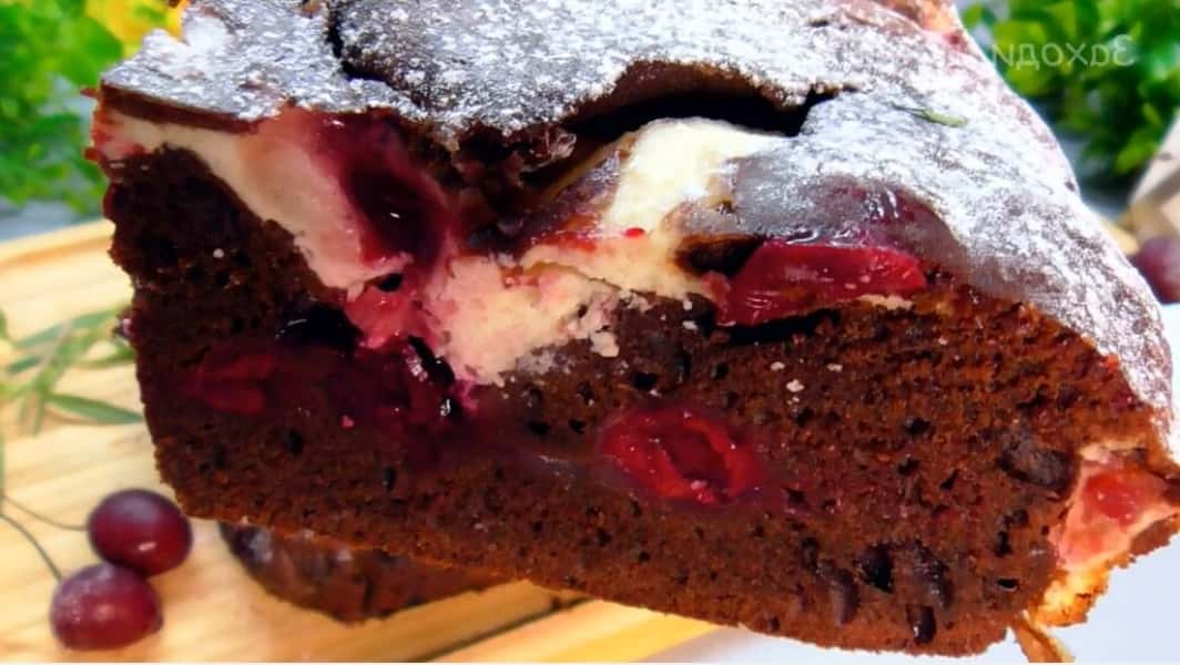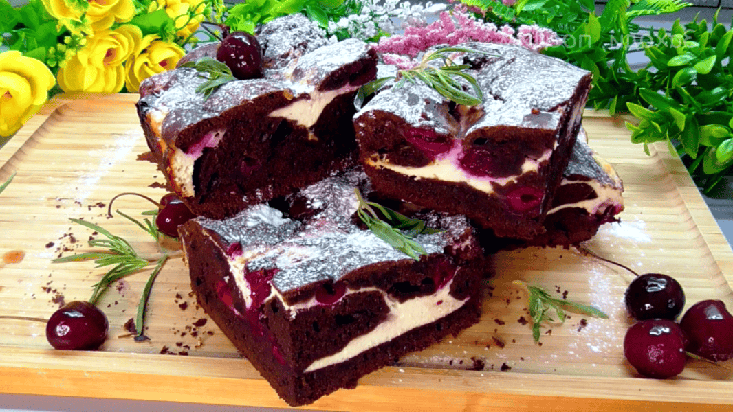Сьогодні хочу поділитися з вами рецептом шикарного брауні з вишнею та сиром. Це справді шедевральна випічка. Виходить вона не лише дуже смачною, а й гарною. Тут дуже вдало поєднуються і вишня з шоколадом, і сир із рештою інгредієнтів.