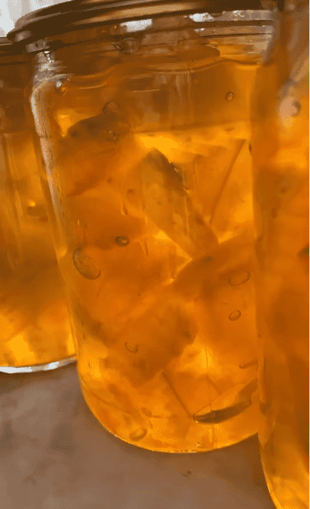 Розливаємо варення з кавунових кірок по стерилізованих баночках, закручуємо стерильними кришками.