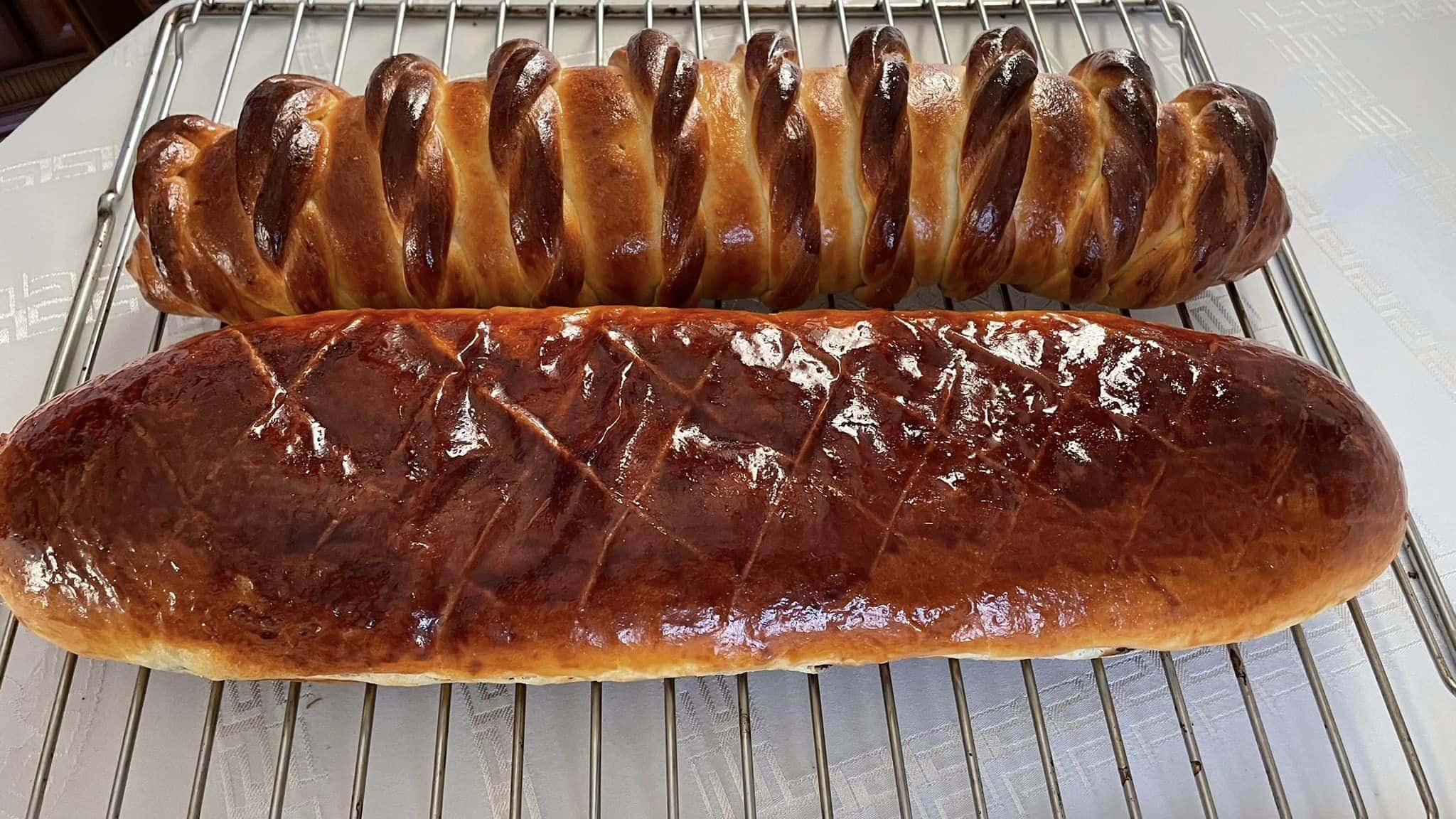 За 5 хв. до випічки змастити жовток+ вода/ молоко , проколоти шпажкою легенько по бокам, щоб волога мала куди виходити та тісто не тріснуло.