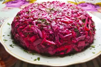 Хочу поділитися з Вами рецептиком ще одного дуже смачного салату на зиму. Рецепт від моєї тітки, готую я його вже давно, але для нашої родини він завжди актуальний. Особливо ми любимо їсти його з яєчнею (такий англійський сніданок), з макаронами, як гарнір до м’яса.