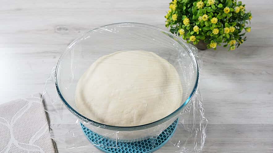 Викладаємо тісто в чашу і накриваємо його. Ми залишаємо на 40 хвилин в теплому місці.