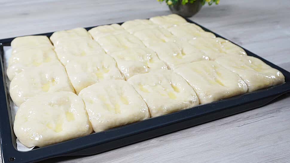 Викладаємо майбутні булочки на деко. Злегка натисніть пальчиками на тісто.