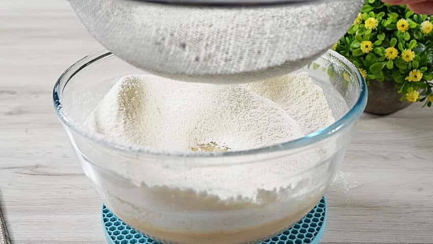 Додаємо сухі дріжджі, цукор і замішуємо вінчиком.