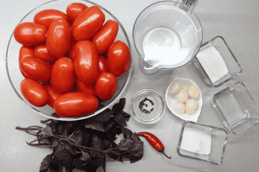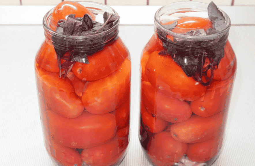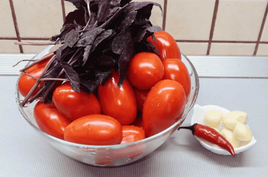 Мариновані помідори з базиліком на зиму – це не тільки дуже гарна, але й смачна заготівля. Інгредієнти у цій парі гармонійно поєднуються та вигідно підкреслюють смак один одного.