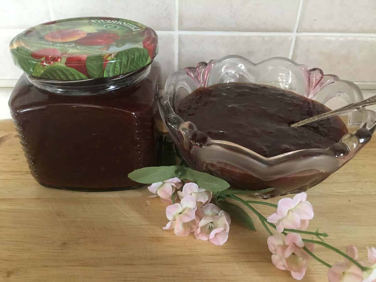 Повторити таке варіння потрібно п’ятикратно. На п’ятий раз додаю в джем какао-порошок, доводжу до кипіння і розкладаю джем в чисті баночки. Баночки закручую і даю їм охолонути.