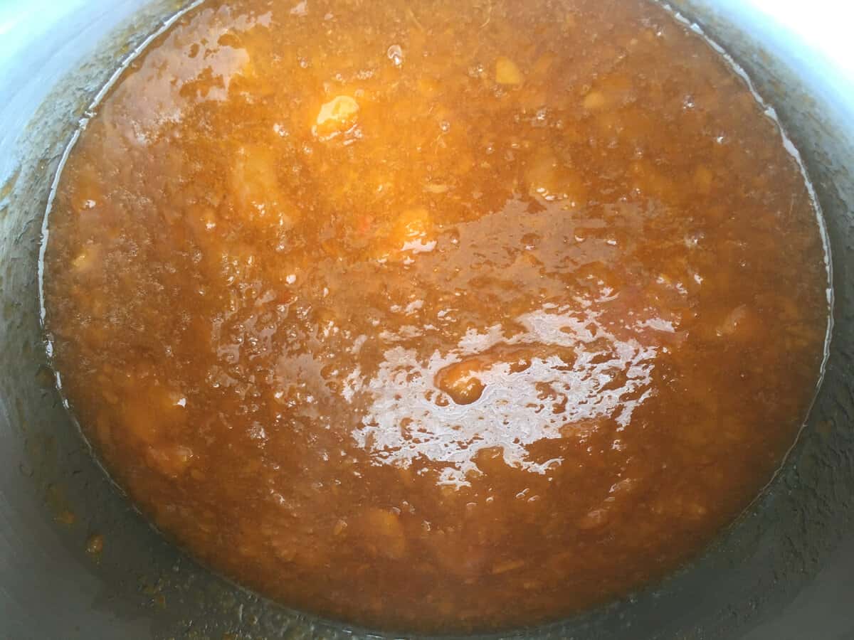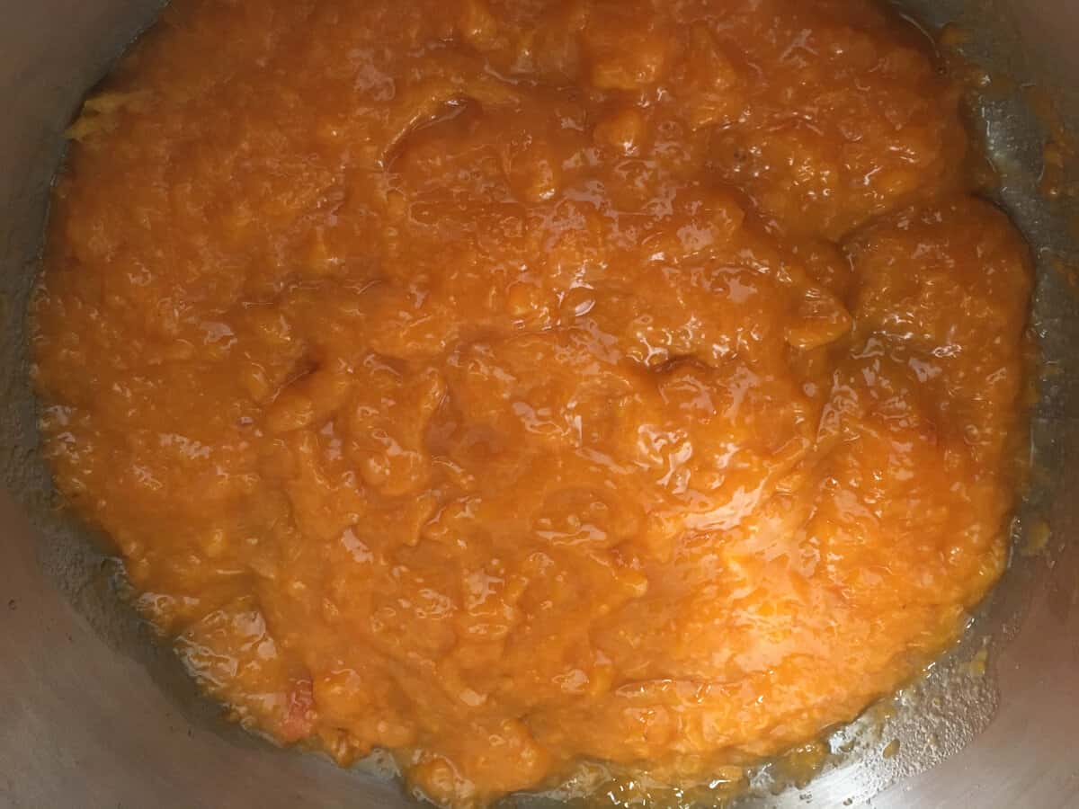 А далі потрібно визначитися, що Ви більше любите: абсолютно гомогенізований джем або джем з дрібними шматочками абрикосів, не зовсім однорідний. Для цього подрібнюємо абрикоси блендером або пропускаємо через м’ясорубку.