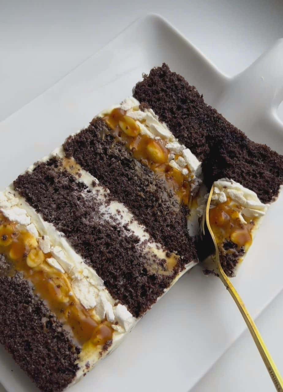 Складання: корж ➡️крем➡️безе ➡️трохи крему з бортиками ➡️карамель-арахіс➡️корж крем ➡️корж ➡️крем (бортики)➡️безе-арахіс ➡️корж !