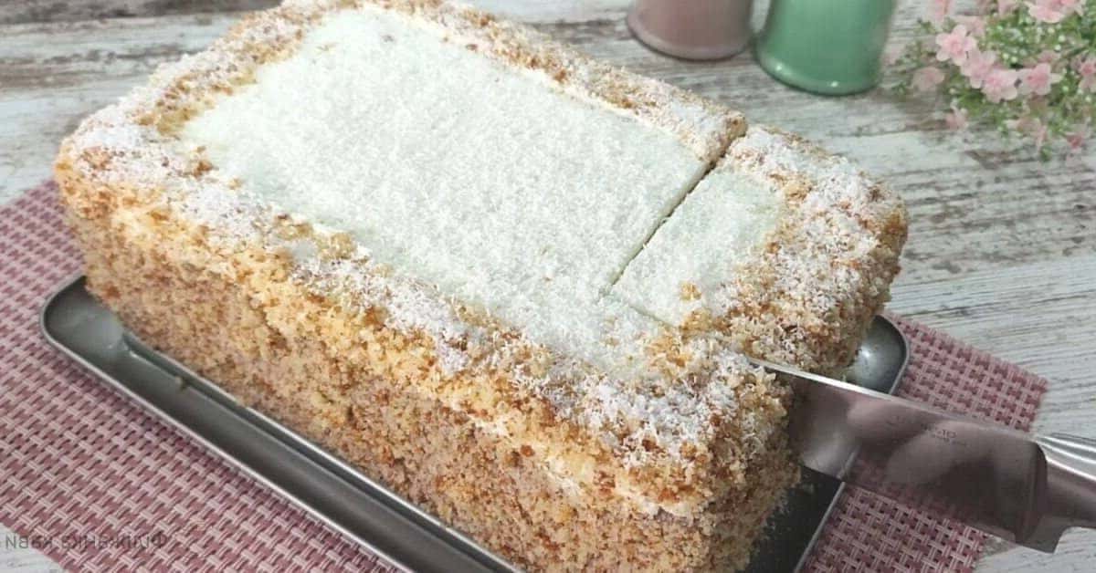 Якщо ви любите тропічні нотки в десертах, беріть на замітку цей рецепт. Торт виходить ситним і ніжним завдяки особливому крему. Готується він з одного пишного бісквіта, який слід розрізати поздовжньо. Це економить час, адже не потрібно випікати кожен корж окремо.