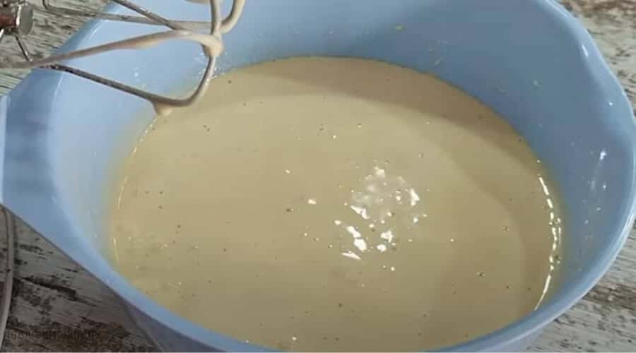 Яйця змішайте з сіллю і 8 г ванільного цукру. Збийте, поступово додаючи звичайний цукор до повного розчинення. Влийте молоко і соняшникову олію, добре перемішайте. Змішайте борошно з 50 г кокосової стружки і розпушувачем, з’єднайте з яєчною сумішшю.