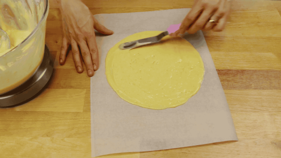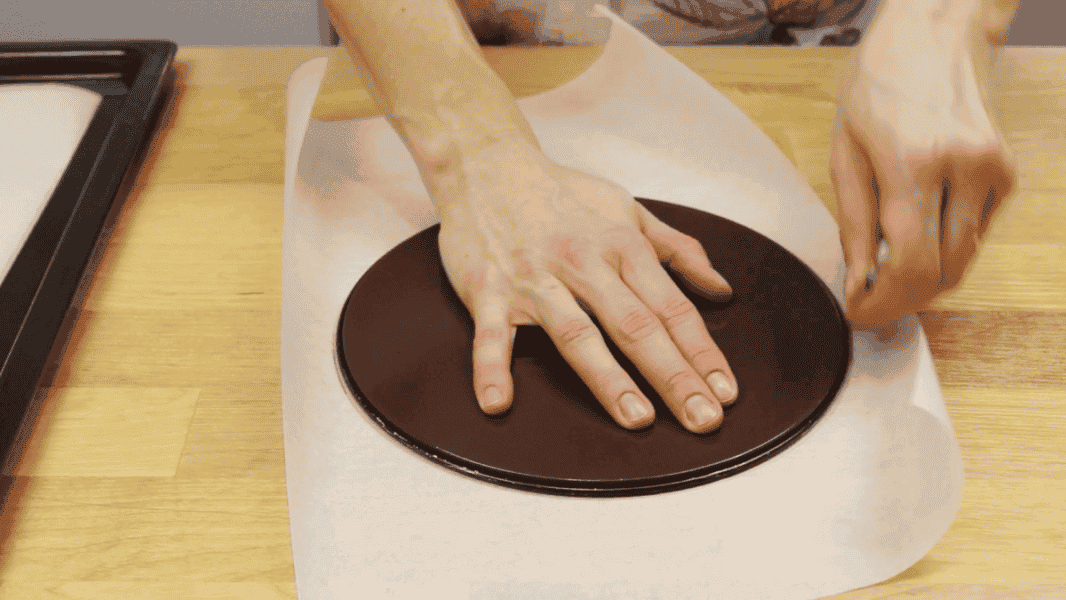 Перевертаю корж і знімаю папір.
