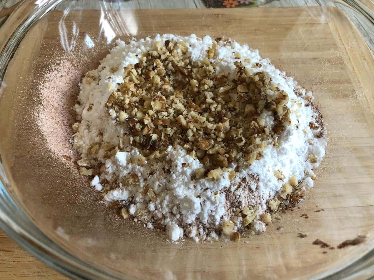 Додаємо щіпку солі, цукрову пудру (або цукор) і подрібнені волоські горіхи (за бажанням).