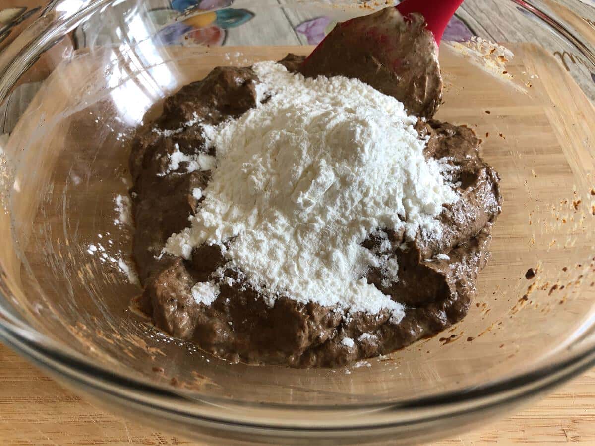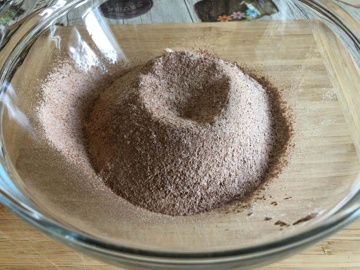 Змішуємо борошно, какао, розпушувач і просіюємо в миску.