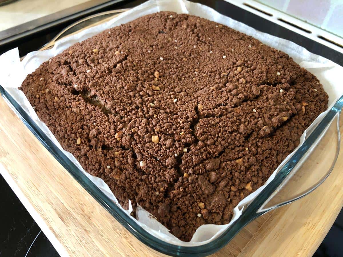 Зверху присипаємо крихтою, що залишилася, яку відкладали в окрему миску.