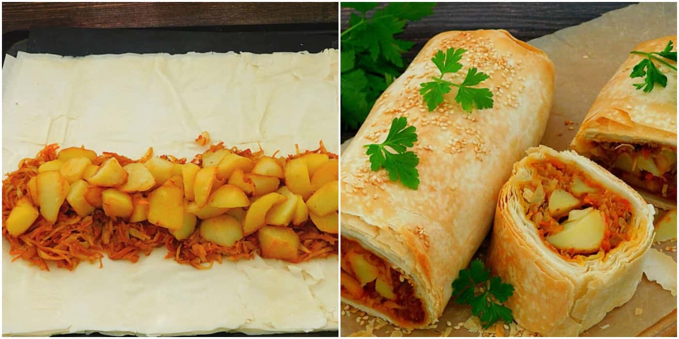 Штрудель — рулет із шаруватого хрусткого тіста з начинкою. Причому це може бути як десерт, і закусочний варіант. Сьогодні на столі штрудель із капустою по-німецьки. Час приготування: 50 хвилин. Порції: 12 людей.