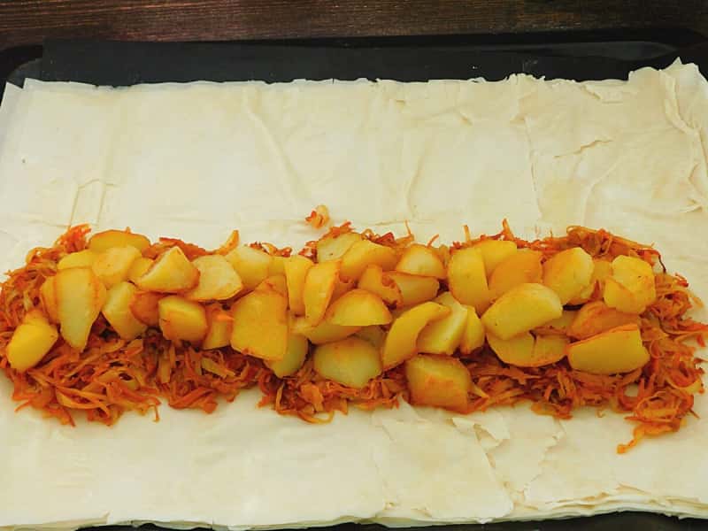 11. Загорнути вільну ділянку тіста на начинку, загнути краї нагору.