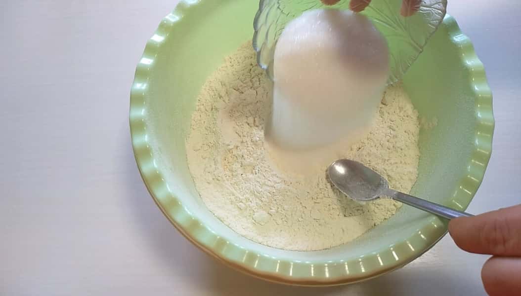 Всипаємо 50 г борошна від загальної кількості.