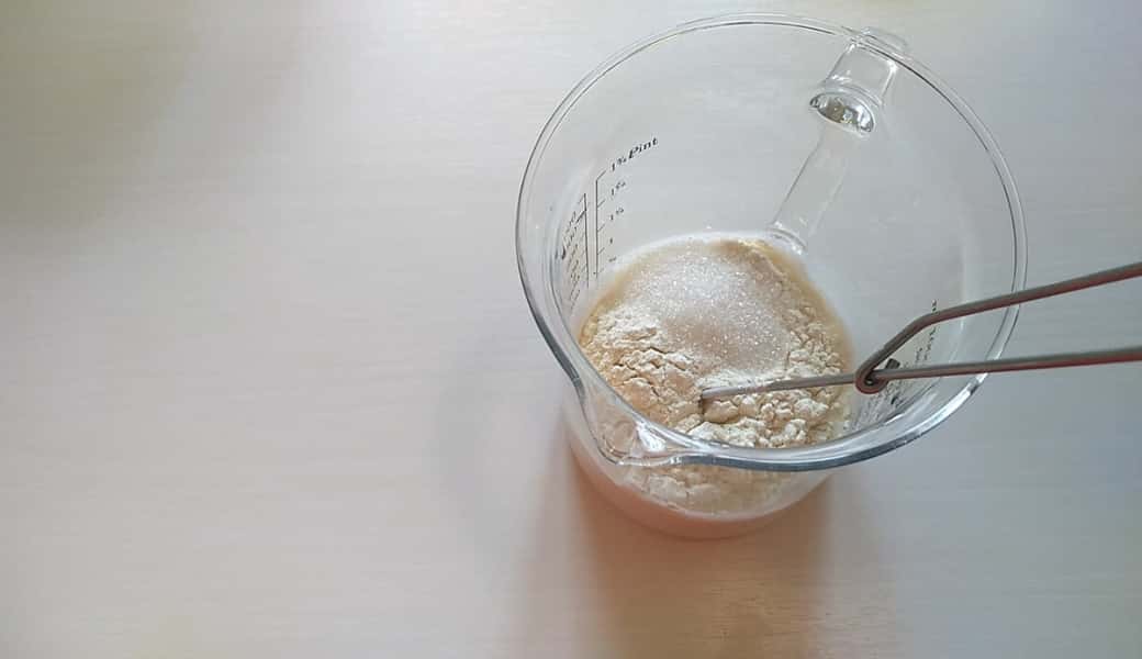 1 ст л цукру ( від загальної кількості) все розмішуємо, накриваємо і ставимо опару підходити в тепле місце на 15-20 хвилин.