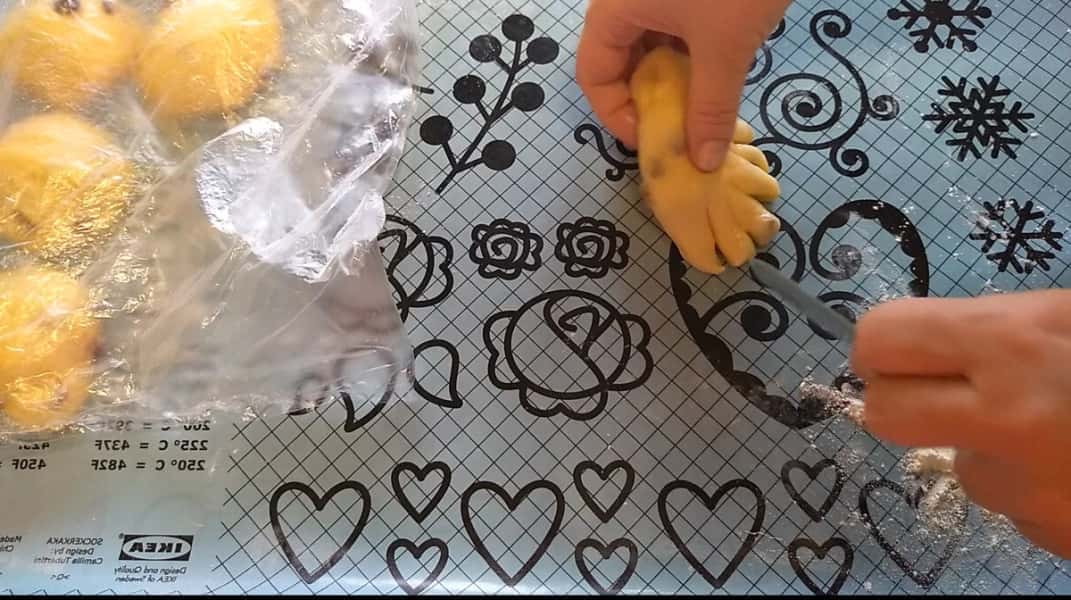 Тісто підійшло, обминаємо, ділимо на 10 частин.