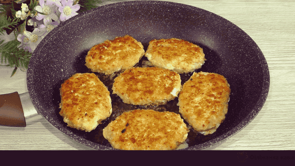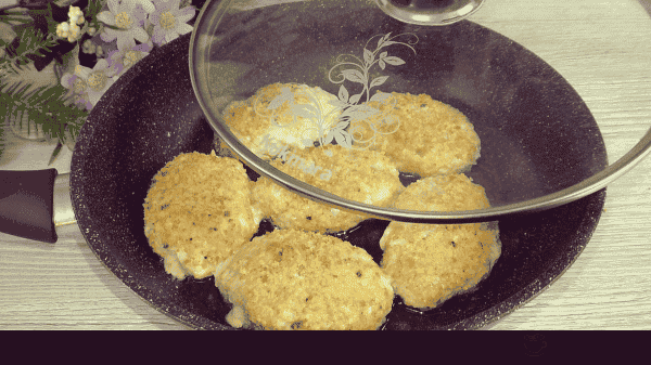 Обсмажуємо котлети в невеликій кількості олії орієнтовно по 5-6 хвилин з кожного боку під кришкою.