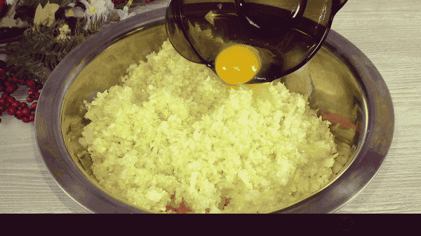 Додати яйце і спеції, перемішати.