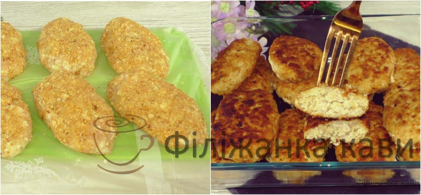 Формуємо котлети, форму вони тримають добре, я в якості панірування використовую сухарі, можна використовувати борошно.