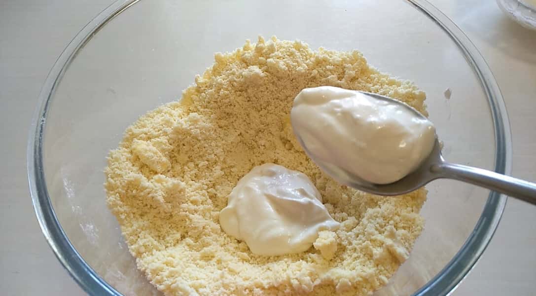 Додаємо 3 ст л сметани, замішуємо м’яке тісто.