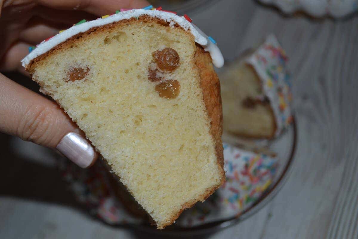 Ось така паска в розрізі, подивіться яка вийшла пориста, повітряна структура.