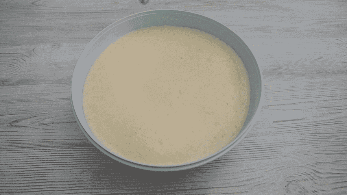 Приготуємо опару. Підігріваємо молоко до теплого стану. Висипаємо в молоко цукор і два пакетика ванільного цукру, перемішуємо вінчиком до розчинення. Потім додаємо 25 г свіжих дріжджів, добре перемішуємо до розчинення дріжджів.