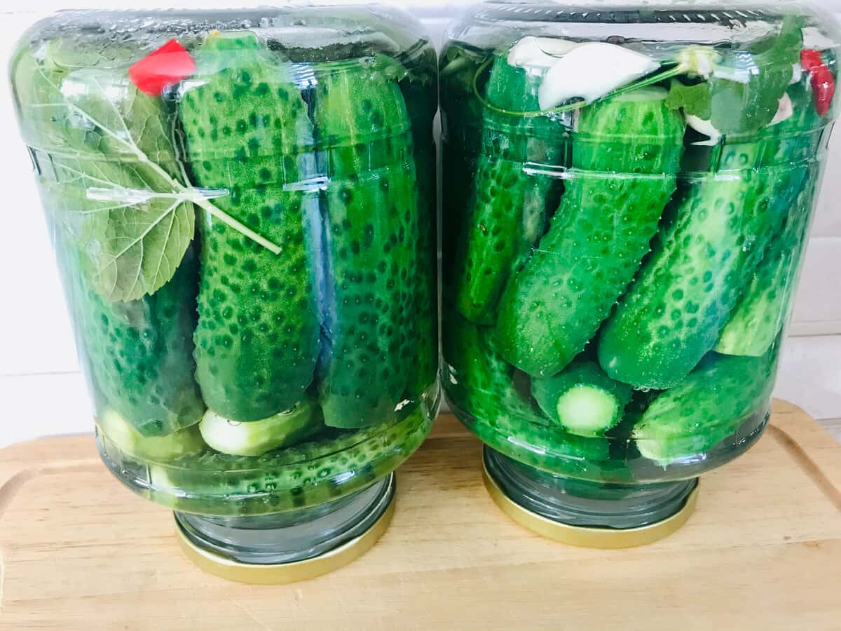 За добу повільного охолодження під теплим укриттям, огірки з зелених стають оливкового кольору. Це той самий “правильний” колір якісних консервованих огірочків.