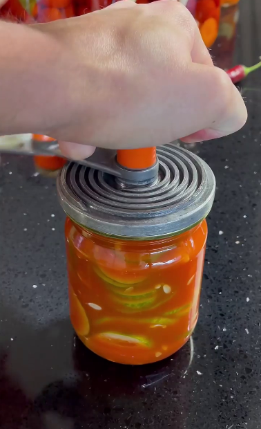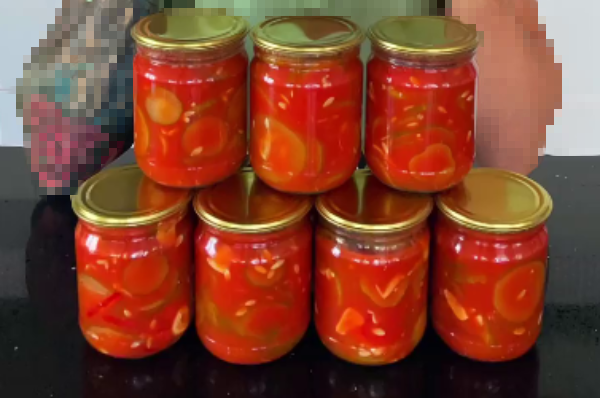 9) Розкладаємо по стерилізованих банках, доверху заливаючи соусом. Закриваємо стерилізованими кришками.