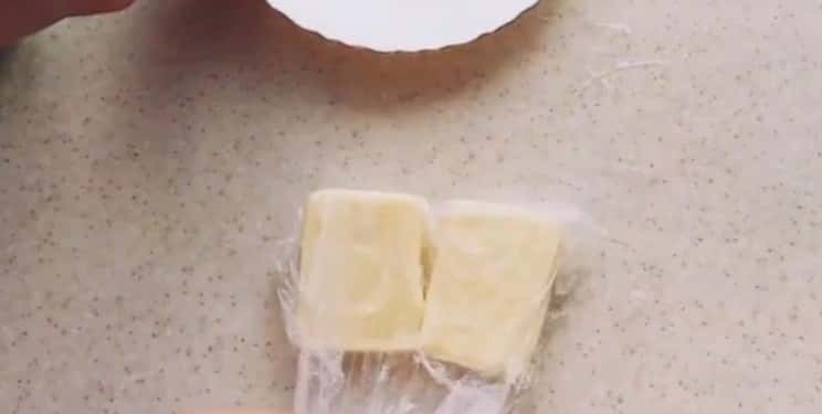 - З холодильника дістаємо сирний пласт і відокремлюємо від пакета.