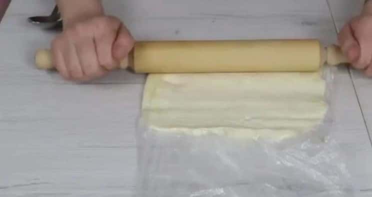 - Потім розкачуємо качалкою в тонкий прямокутний шар.