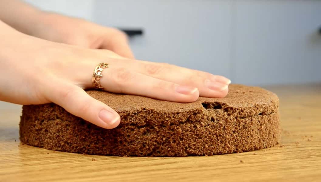 Виходить такий невисокий бісквіт. Даємо йому повністю охолонути на решітці.
