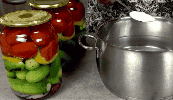 А поки що в каструлю наливаю воду і додаю на 1 літр води 1 столову ложку солі, 2 столові ложки цукру.