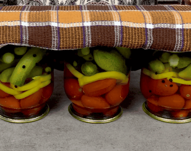 Закриваю кришками. Перевертаю банки на кришки. Накриваю ковдрою і залишаю стояти до повного остигання.
