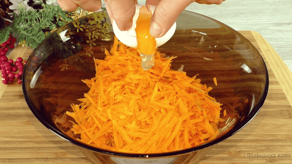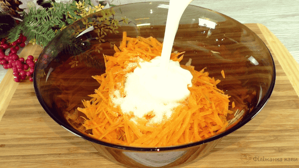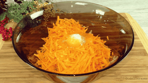 Яблука і моркву натерти на великій терці, відправити в одну миску.