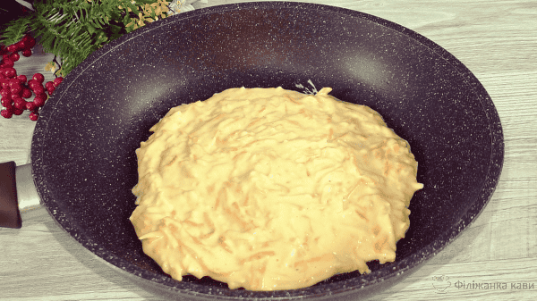 Сковороду змащую олією і викладаю масу в формі паляниці. Можна в формі оладок приготувати.