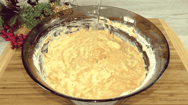 Вливаю кефір, його краще трохи підігріти. Перемішати.