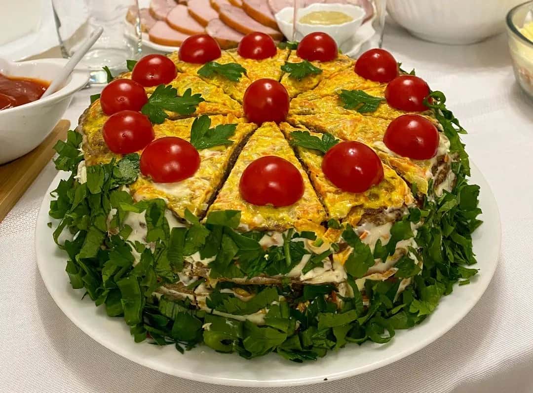 - ‼️Важливо не додавати багато часнику, інакше торт буде “гірчити”.