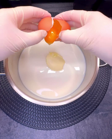 🔻Для крему змішуємо всі інгредієнти (молоко, цукор, ванільний цукор, вершкове масло, крохмаль, яйце).