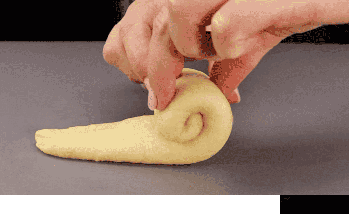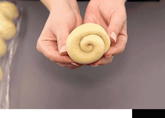 - Злегка розтягуємо заготівлю, приплющуємо і скручуємо «равликом». Ось така виходить гарна булочка!