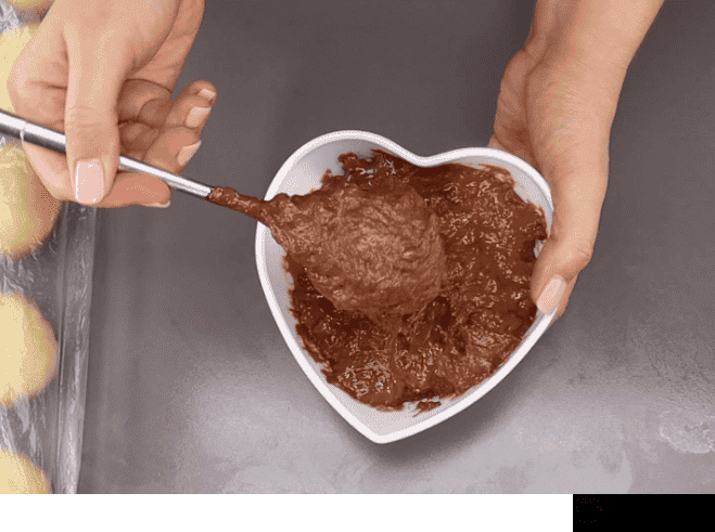 Тепер тісто округляємо до центру, підкачуємо та отримуємо рівні та красиві кульки. - Накриваємо заготовки пакетом, щоб не завітрювалися і приступаємо до формування. Як начинка сьогодні у мене буде шоколадний пудинг. Я готувала його згідно з інструкцією на упаковці. Пудингу даємо повністю охолонути.