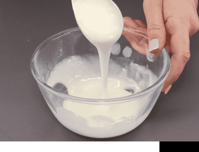 - Для цього до цукрової пудри додаємо 1 ст. л. сметани (у мене 20%) та перемішуємо до однорідності. Глазур має вийти досить рідкою.