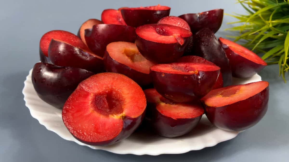 1. Сливу, краще взяти велику і жорстку, добре промиваємо проточною водою, ділимо на дві половинки і прибираємо кісточки.