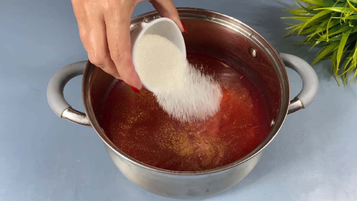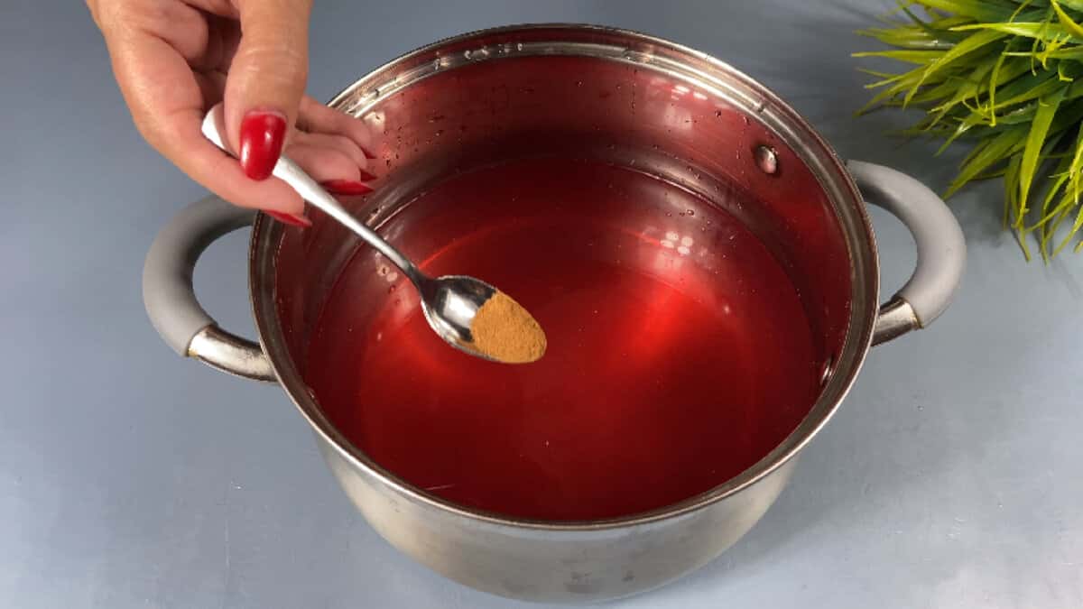 5. Додаємо в воду корицю, цукор, все добре перемішуємо і доводимо до кипіння.