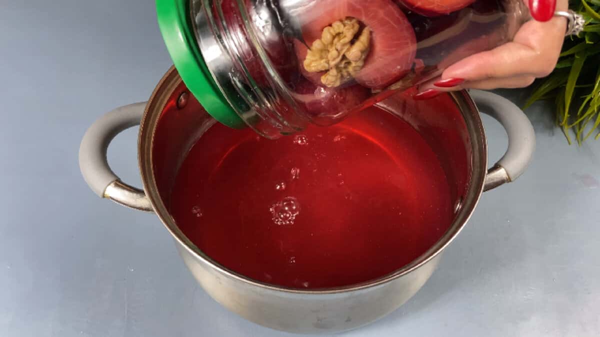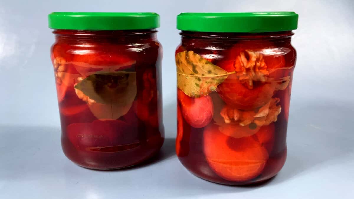 6. У банки наливаємо горілку, яблучний 6% оцет, заливаємо киплячим маринадом, закриваємо кришками, укутуємо до повного охолодження і зберігаємо в домашніх умовах.