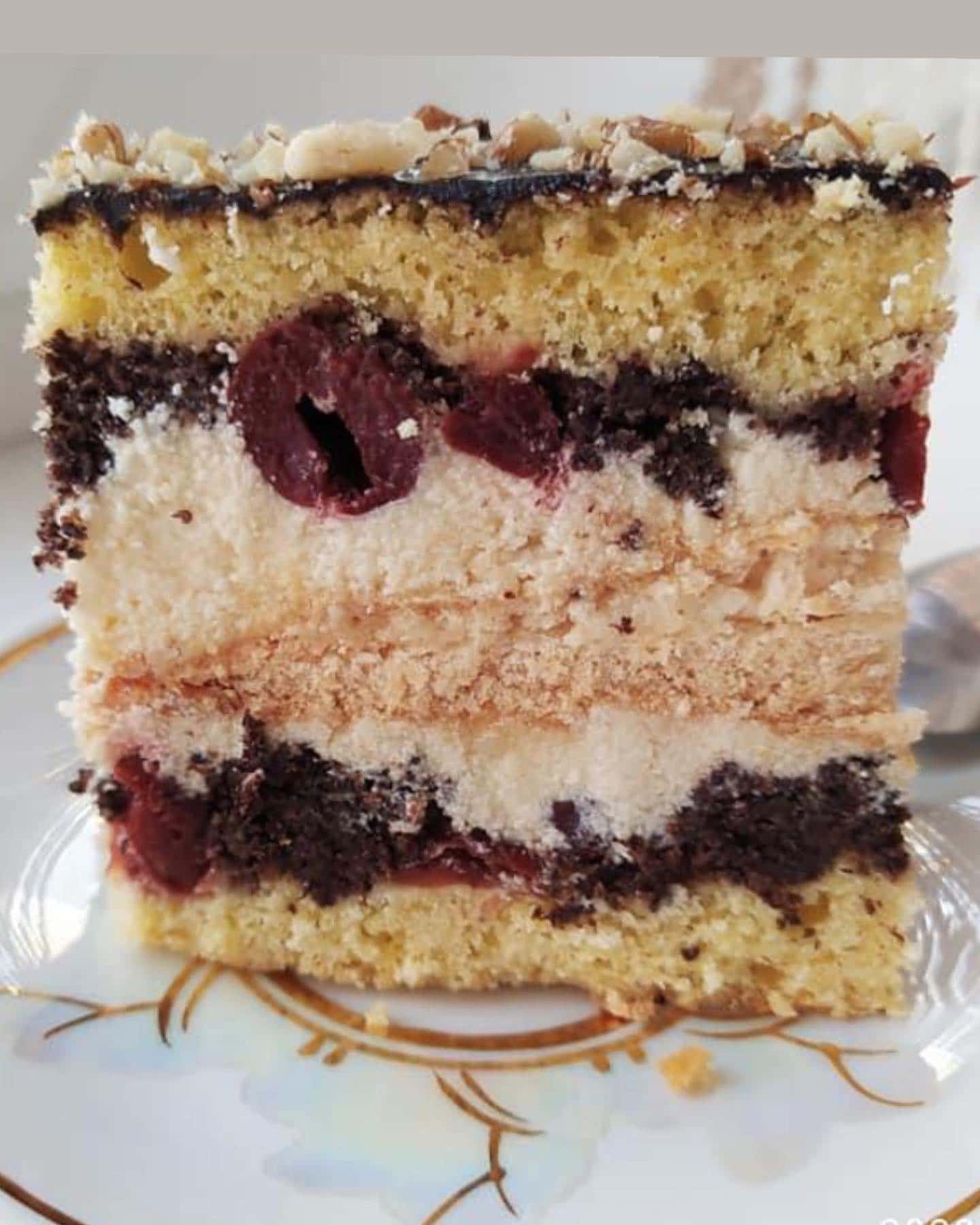 Безе всередині. До речі, зовсім не м’якне від крему і приємно хрупостить при ласуванні пляцком.